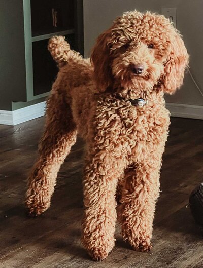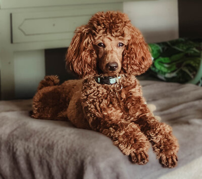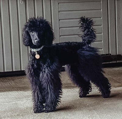 Orla is very silly, affectionate, reserved with strangers, and extremely loving to her family. She loves her humans and is happy being home all day with them. She loves to play with her poodle family.